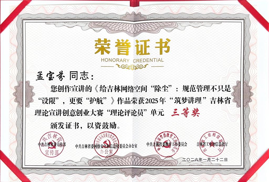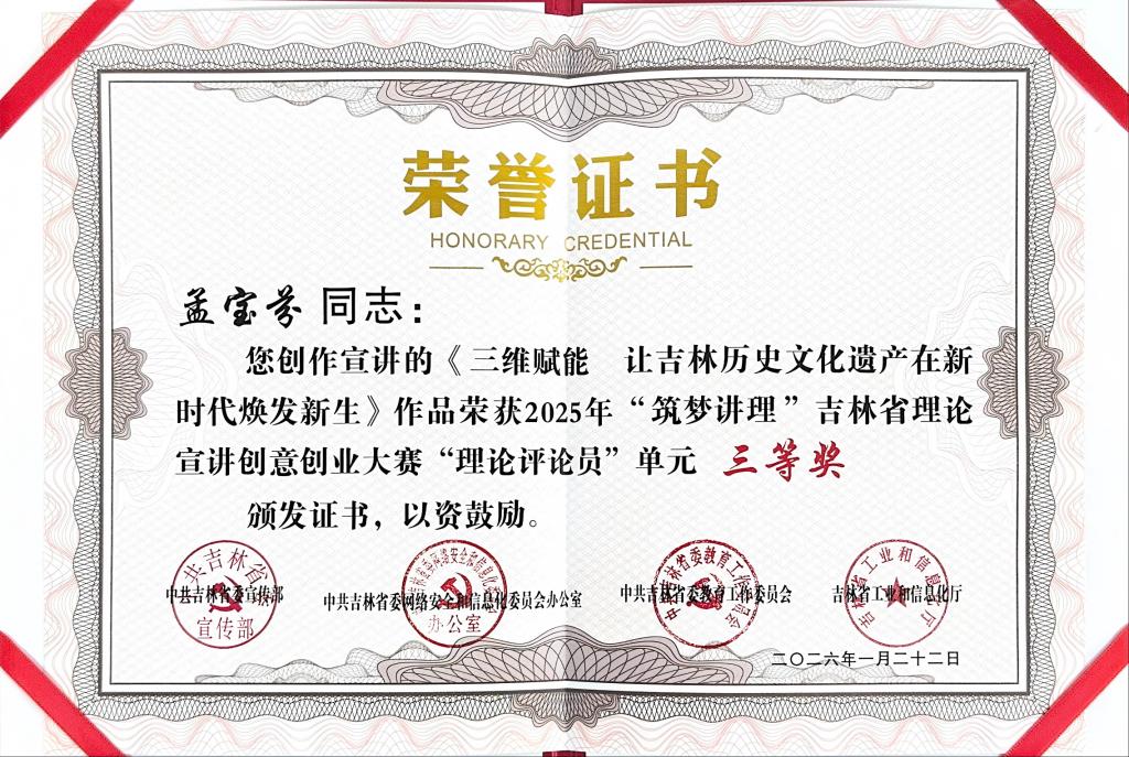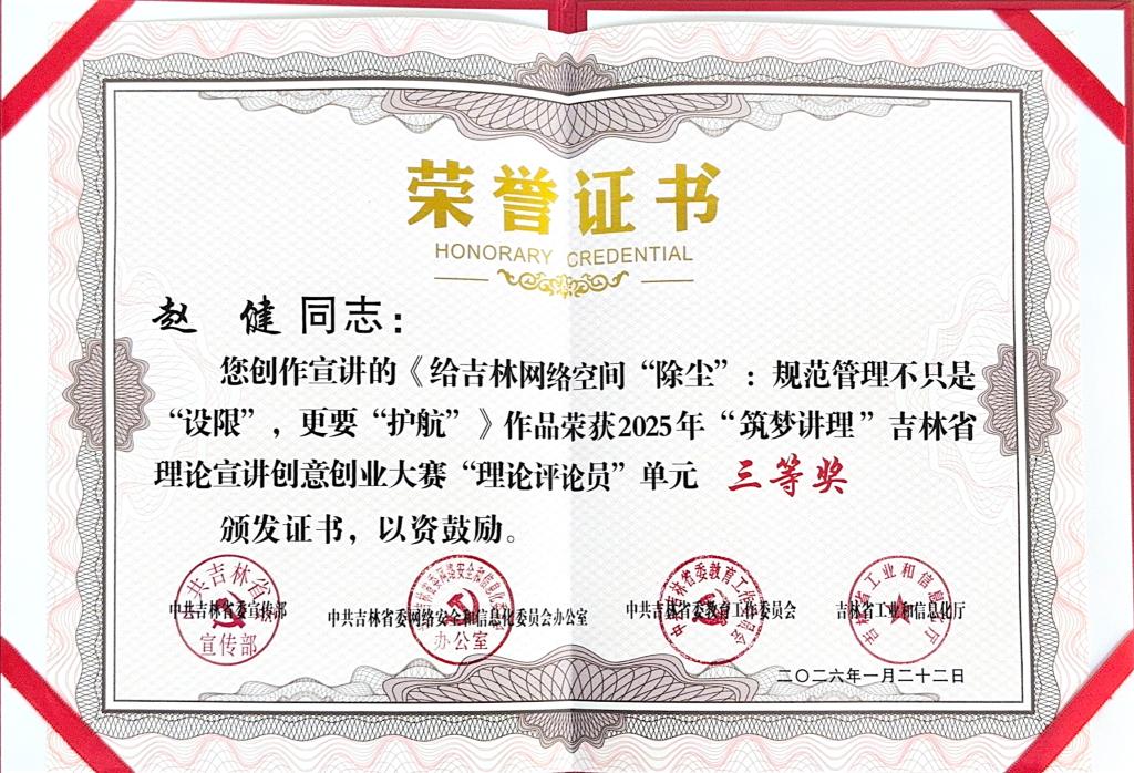 近日,由省委宣传部、省委网信办、省委教育工委、省工信厅联合举办的“筑梦讲理”吉林省理论宣讲创意创业大赛圆满落幕。省委常委、宣传部部长曹路宝出席颁奖仪式。